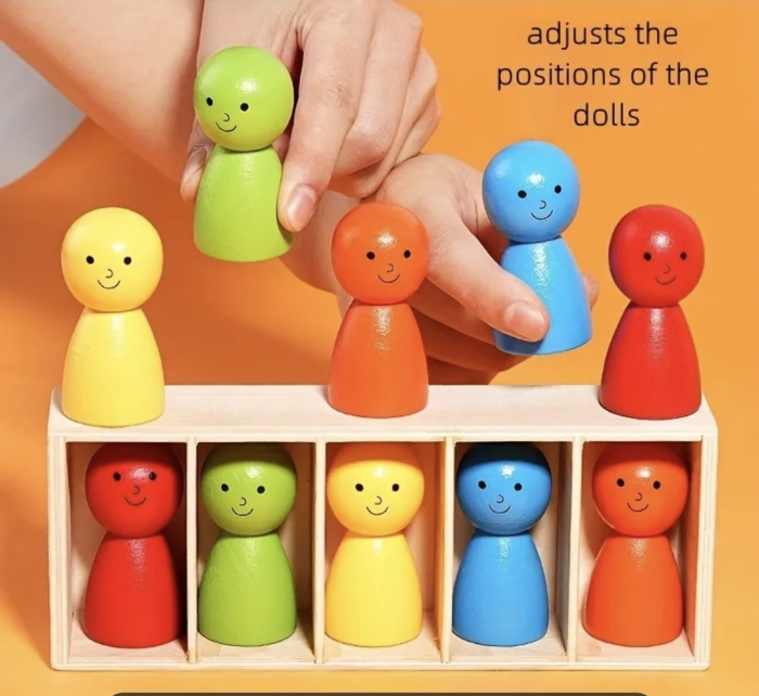 1. Unul dintre jucători aranjează 5 omuleți de culori diferite într-o anumită ordine, plasându-i în cutiuță și ascunzându-i în spatele unui mic paravan/tablă.