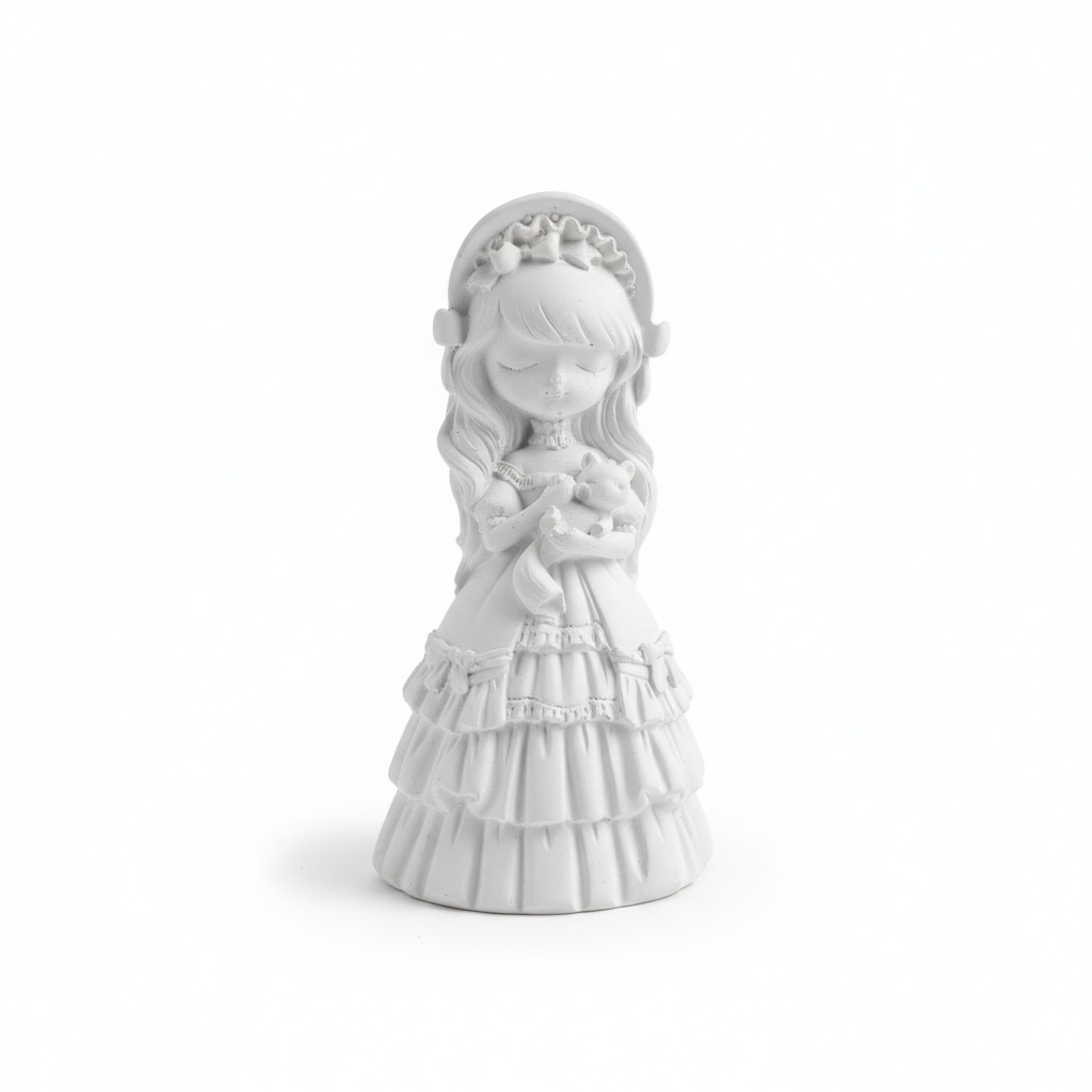 Figurină de ipsos pentru pictură – prințesă cu pisicuță. Ideală pentru copii și activități creative, perfectă pentru pictat și decor handmade. Material non‑toxic, ușor de colorat.