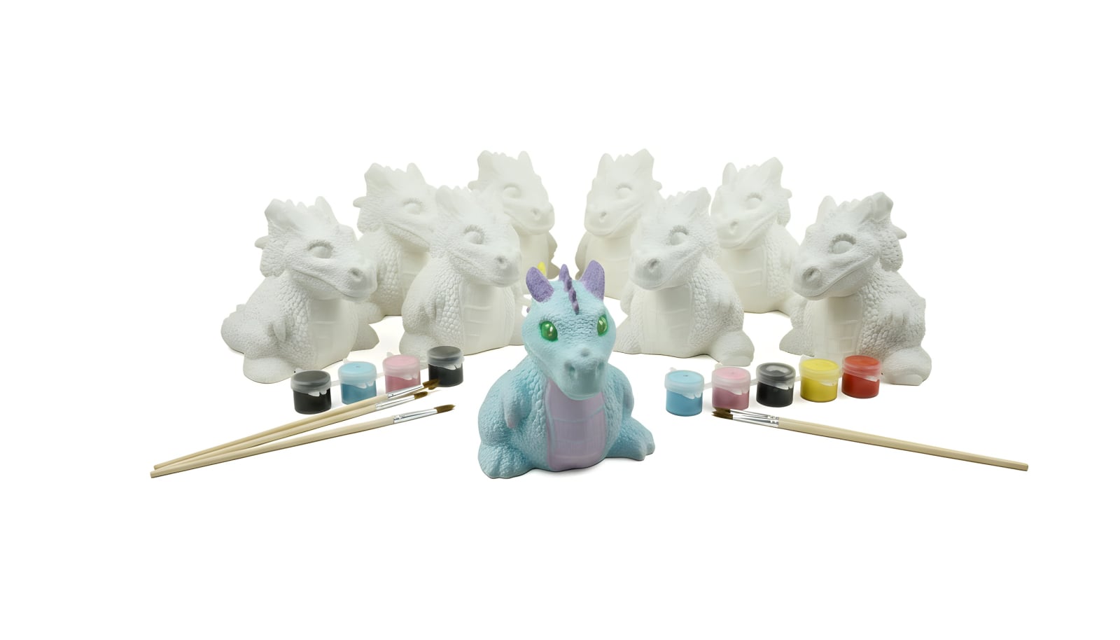 Set creativ pictura Dragoni pentru copii, perfect pentru petreceri și activități de grup! Conține 8 figurine 3D din ipsos (10x8x8 cm), 8 pensule și 8 seturi de vopsele non-toxice. Ideal pentru băieți, acest set oferă o activitate distractivă și educativă, care stimulează imaginația și creativitatea.